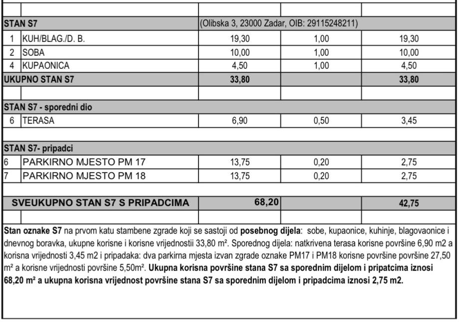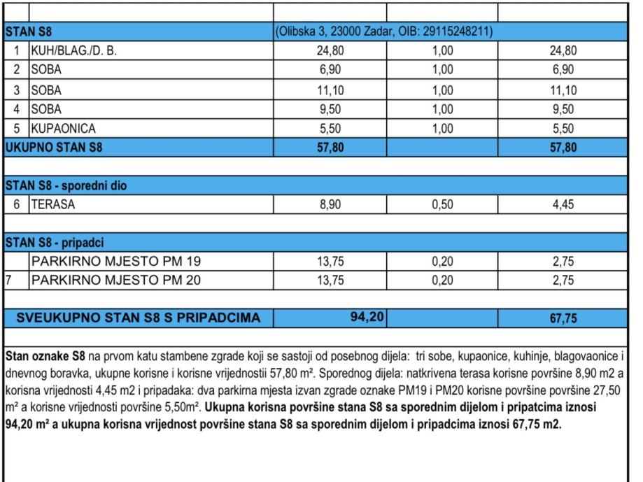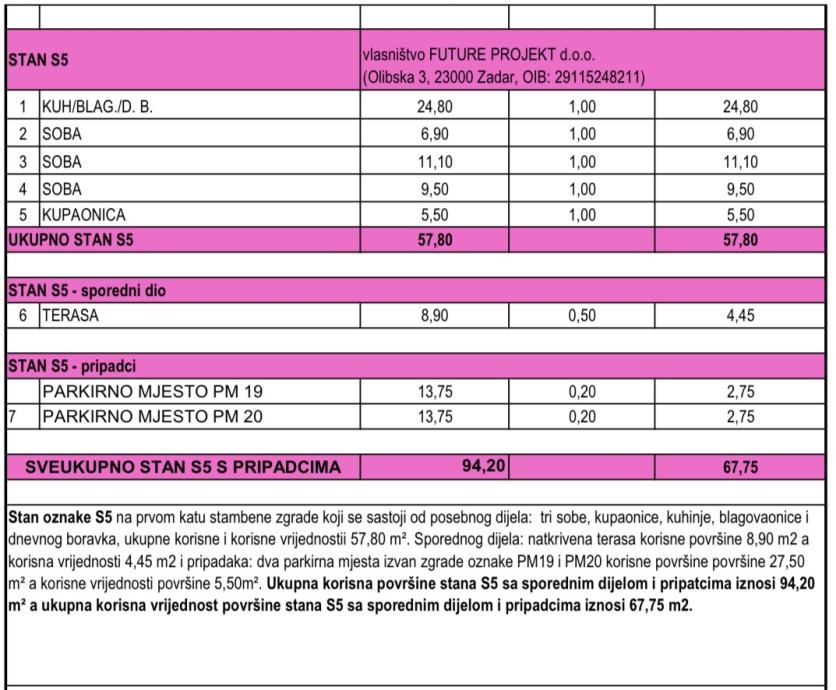 Ukupna obračunska korisna vrijednost površine stana iznosi 67,75m2 (NKP)