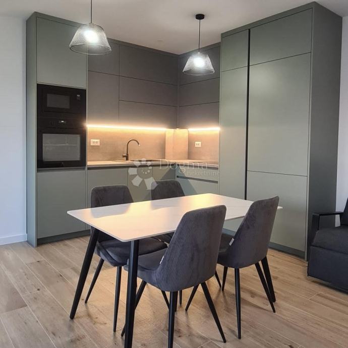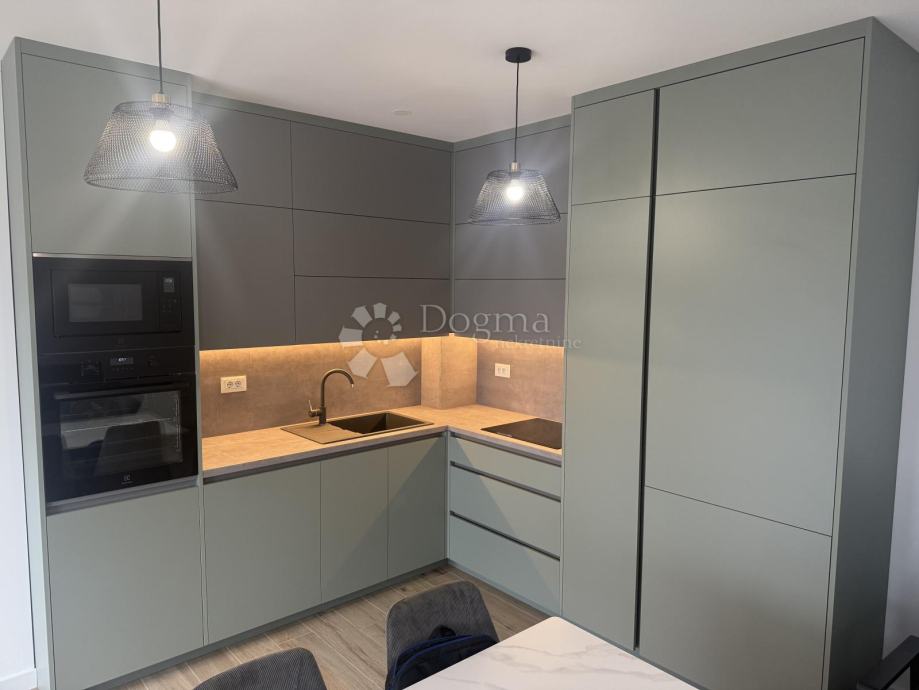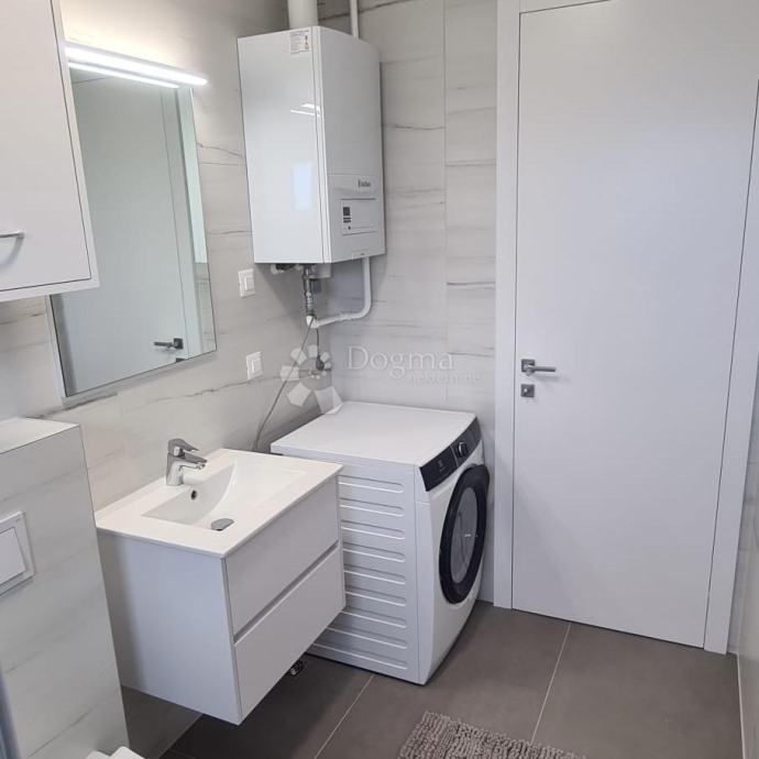 Vrhunski je opremljen s modernim namještajem, kuhinjom rađenom po mjeri, ugradbenim ormarima, etažnim plinskim grijanjem s digitalnim termostatom, klima uređajem, električnim podizaćima roleta itd.