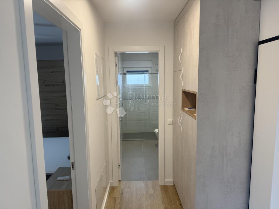 Stan se sastoji od dnevnog boravka povezanog s kuhinjom i blagovaonicom, iz kojeg se izlazi na prostranu terasu idealnu za jutarnju kavu ili druženje. Tu je i komforna spavaća soba te moderna kupaonica s tuš-kabinom. Uz sam stan dolaze i garaža, vanjsko parkirno mjesto te spremište u podrumu zgrade.