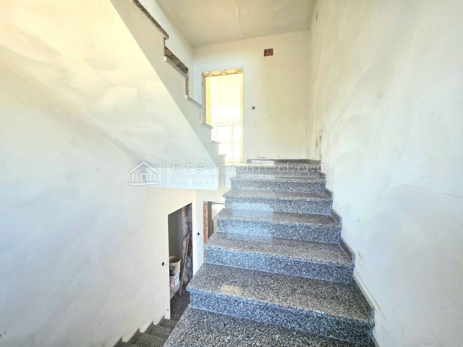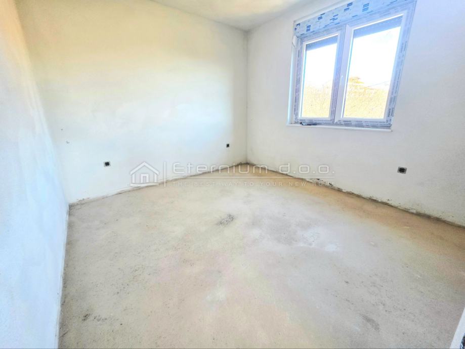 Već smo rekli da se stan nalazi na prvome katu moderne novogradnje, a sastoji se od ulaznoga hodnika, spremišta, spavaćega dijela kojega čine 2 spavaće sobe i kupaona te open space dnevnoga dijela kojega čine kuhinja sa blagovaonom i dnevni boravak iz kojega se izlazi na loggiu površine 10m2 sa koje se pruža djelomičan pogled na more i prirodu. Kako je navedeno, stan ima ukupnu površinu od 64m2, dok je prodajna površina 61,70m2 zbog koeficijenta kojim se računa loggia.