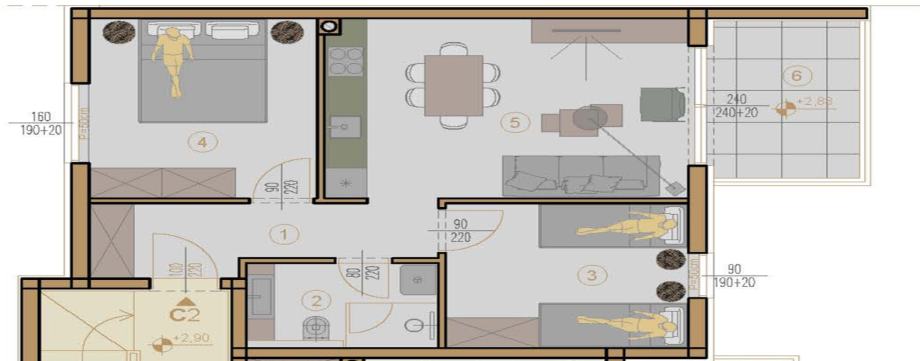 Stan oznake C2 neto površine 53.86 m2 nalazi se na 1.katu zgrade s ukupno četiri stambene jedinice, u mirnoj i traženoj urbanoj zoni, idealnoj za sve koji žele spoj privatnosti i praktičnosti.