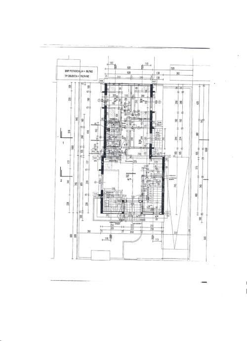 U zgradi se nalaze 3 stana, u visokom prizemlju (106,69 m2), na prvom katu (105,03 m2) i