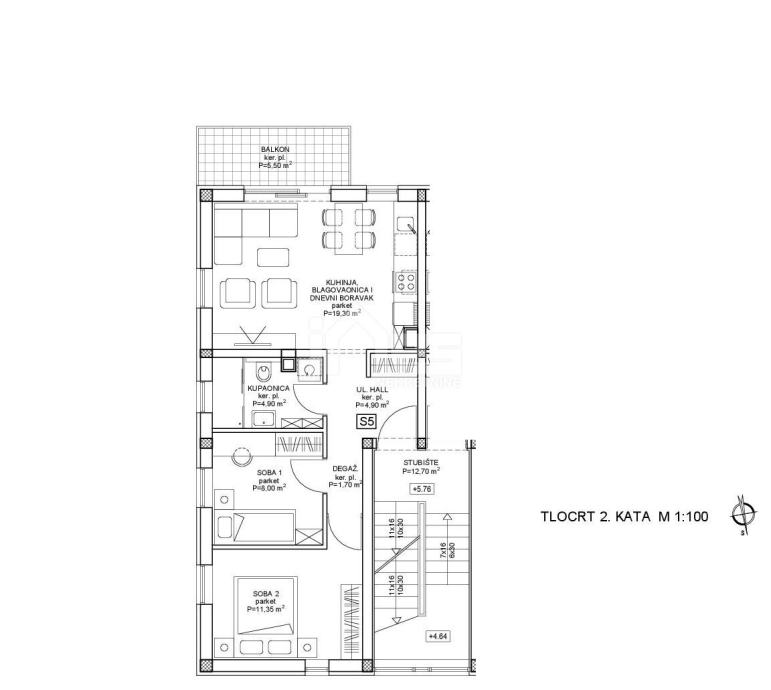 Stambena zgrada sa 7 stanova u Zaprešiću. Stan na 2. katu (S5) sastoji se od ulaznog dijela, kupaonice, kuhinje sa blagovaonom i dnevni boravak, degažman te dvije spavaće sobe. Početak gradnje 08/2024 godine, a završetak gradnje 09/2025 godine.
