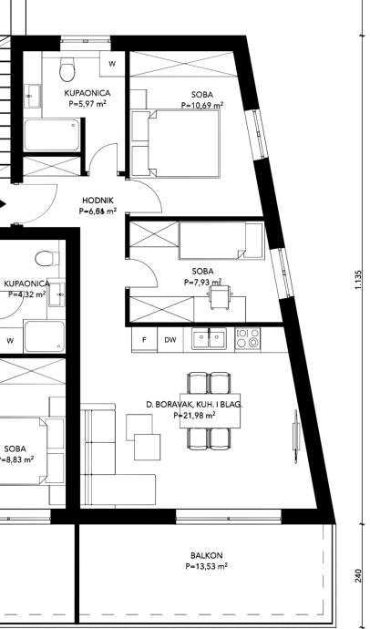 prostranog dnevnog boravka s blagovaonicom (21,98 m2)