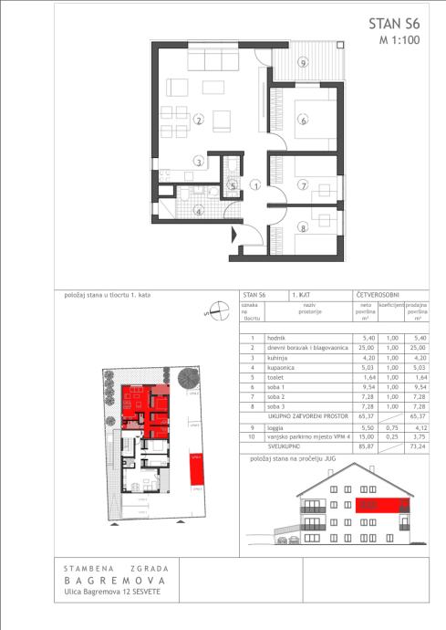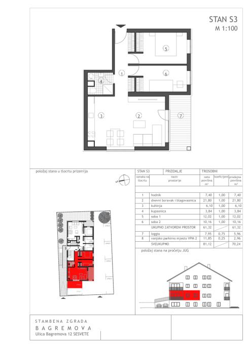 • S6 Trosobni stan 69.49 m2 – 190.000,00 € - Prodano