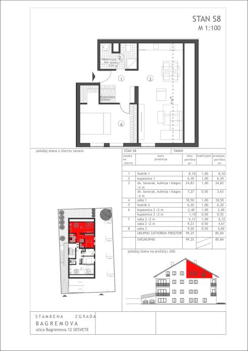• S8 Trosobni stan s galerijom 85.84 m2 – 225.000,00 €