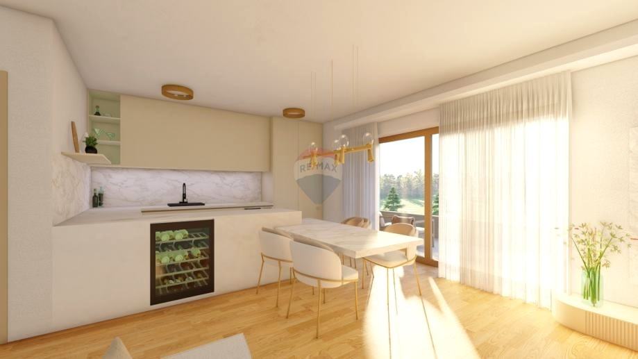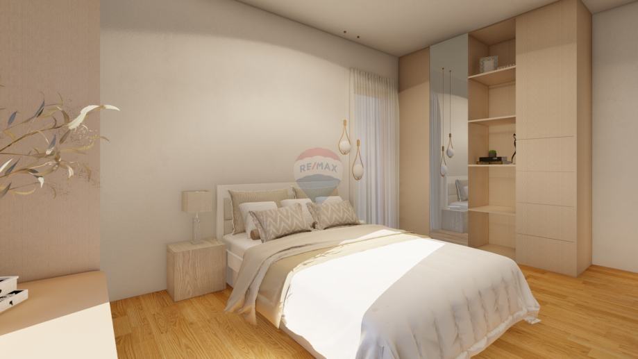 Stan će biti opremljen keramikom velikog formata prve klase, te troslojno lakiranim parketom pogodnim za podno grijanje.