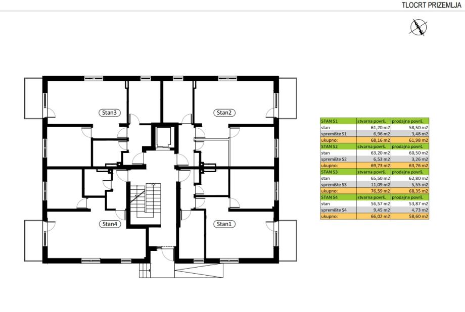 Stan S2 – prizemlje 69,73 m2 (NKP 63,76 m2)