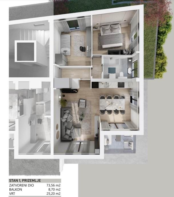 ✅ Privatni vanjski prostori – svaki stan ima vlastiti vrt ili veliku terasu