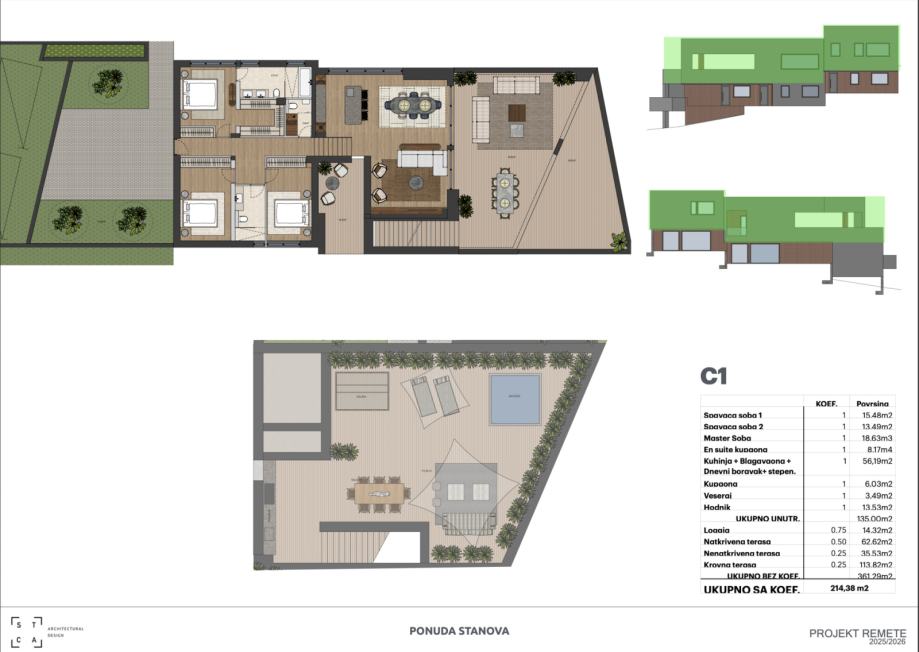 Prodajemo stan(penthouse) oznake C1, netto korisne površine 214,38m2, na drugom katu urbane vile u izgradnji koja se sastoji od 4 stana, na Maksimiru, Barutanski jarak.