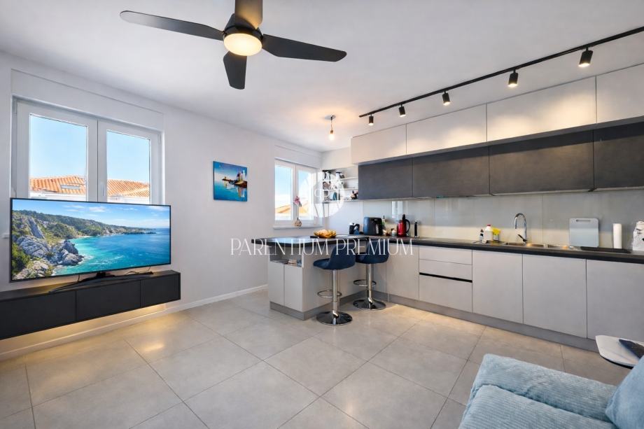 Stan se ističe funkcionalnim rasporedom, modernim uređenjem i pažljivo odabranim detaljima koji pružaju visoku razinu udobnosti i estetike. Prodaje se potpuno namješten te je spreman za useljenje ili turistički najam bez dodatnih ulaganja.