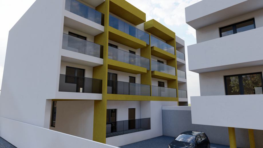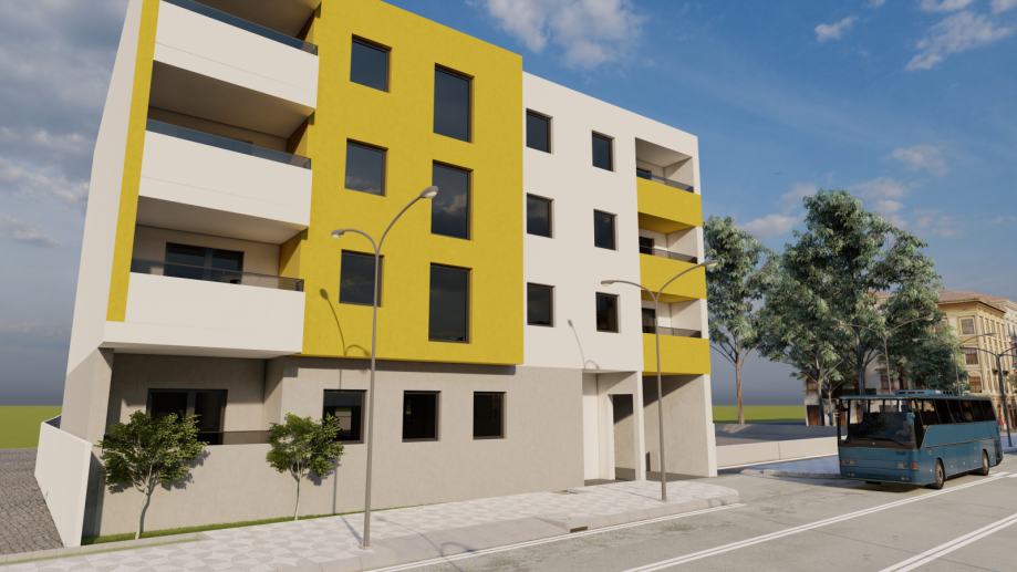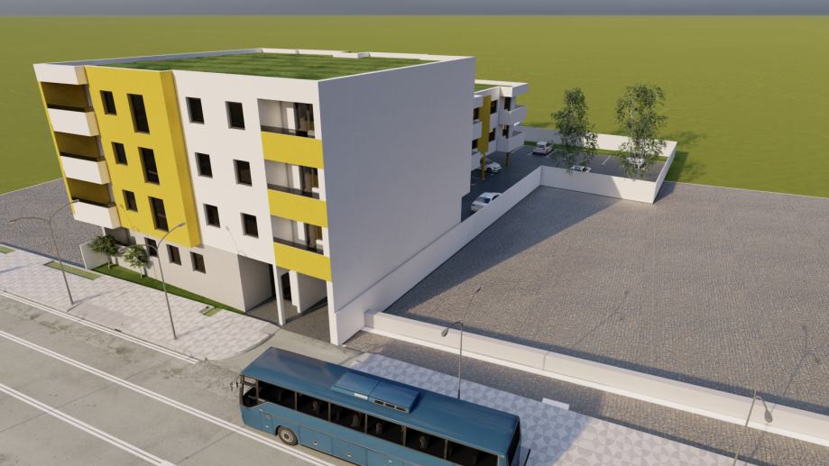 Trosobni novi stan u višestambenoj zgradi u izgradnji.