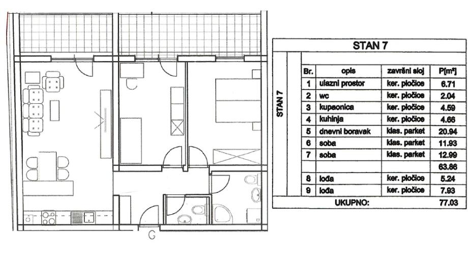 STAN G = 2 kom…. 77,03 m2 - 2. i 3. kat (lift)