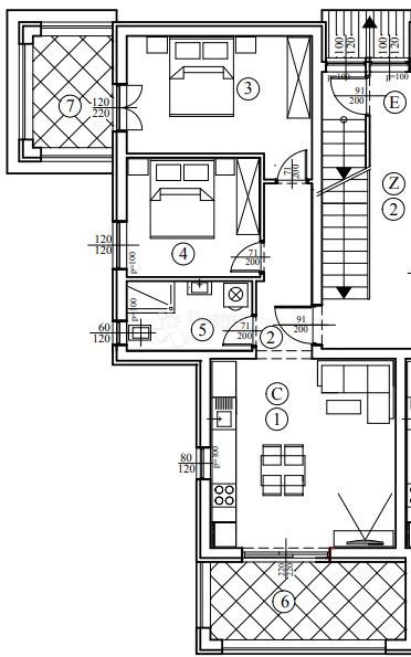 Stan se sastoji se od dnevnog boravka s kuhinjom, koji zajedno čine otvoren prostor za boravak. Hodnik vodi do suvremeno opremljene kupaonice, te dvije spavaće sobe od kojih jedna ima i svoju terasu. Iz dnevnog boravka također se izlazi na terasu, tako da raspolažete sa savršenim mjesto za jutarnju kavu ili opuštanje nakon radnog dana.