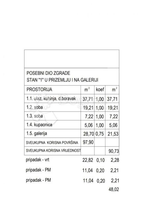 Prekrasan dvosoban stan sa vrtom i galerijom u prizemlju novogradnje ukupne površine 97,43 m².