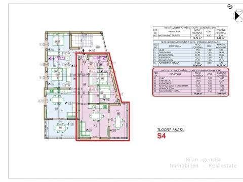 Stan oznake S4 se nalazi na prvom katu zgrade koja se sastoji od prizemlja i dva kata. Ukupno 6 stanova.