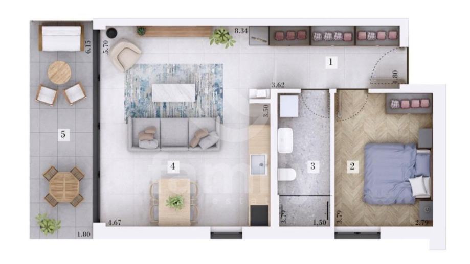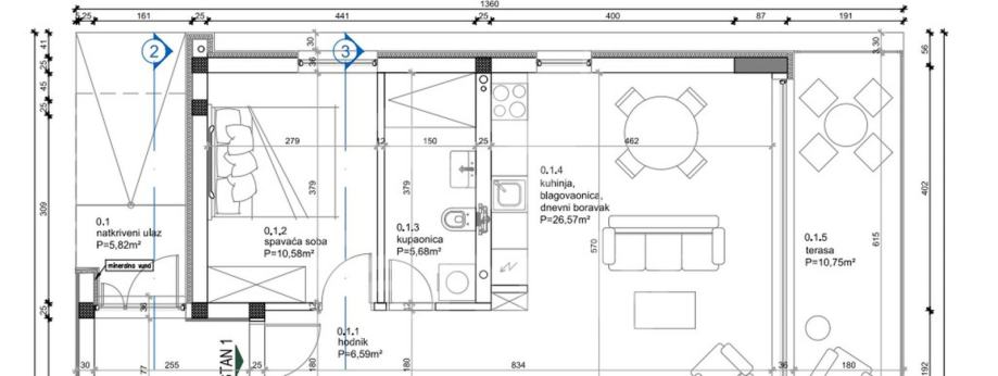 Nedaleko od Rovinja, u jednom mirnom naselju planirana je izgradnja manje stambene zgrade sa sveukupno četiri stana. Početak gradnje planiran je 2025. godine, obzirom da je građevinska dozvola ishodovana, a završetak 2026. godine. Upravo ova buduća visokokvalitetna novogradnja posjedovat će stan u prizemlju površine 58,32 m2. Stan će se sastojati od ulaznog predprostora, otvorenog koncepta prostranog dnevnog boravka sa blagovaonicom i kuhinjom, kupaonice, spavaće sobe i prostrane terase. Okućnica i parkirno mjesto su dio ovog budućeg prelijepog stana što osigurava dodatni komfor za buduće vlasnike. Tijekom opremanja stana bit će pažljivo odabrani materijali, postavit će se talijanska keramika u cijelom stanu, osim u spavaćoj sobi gdje je predviđena drvena podna obloga, a stolarija će biti troslojnog stakla, PVC bijele boje sa aluminijskom vanjskom oblogom antracit boje i aluminijske rolete sa elektronskim podizačima. Sustav grijanja i hlađenja bit će reguliran putem MultiSplit sustava, dok će podno grijanje biti postavljeno u kuhinji i kupaonici. Planirana je visokokvalitetna gradnja i moderan stil fasade sa kamenim oblogama, demit debljine 10 cm, a na parceli su predviđena tri električna punjača za vozila, što budućim vlasnicima omogućuje praktično i i ekološki održivo rješenje za punjenje osobnih automobila. Lokacija je idealna u smislu mirnog naselja, a opet nedaleko od popratnog sadržaja neophodnog za svakodnevni život te se nalazi na svega 7 km od atraktivnog Rovinja. Cijena je izražena sa PDV-om što predstavlja mogućnost umanjenja za isti prilikom kupovine putem tvrtke.