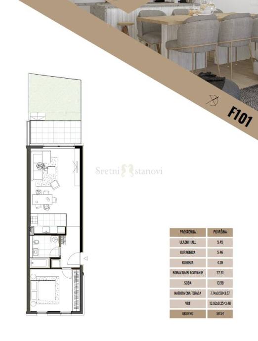 Stan 1SB+DB sa vrtom u prizemlju zgrade 58,31m2.