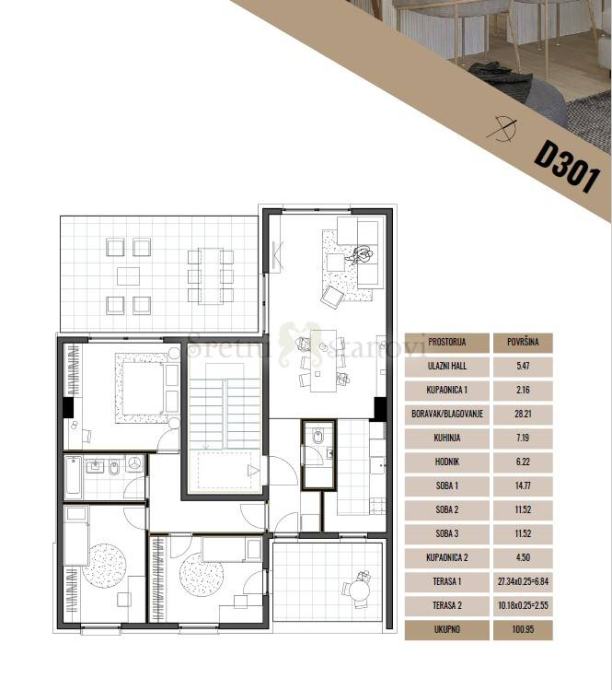 NOVOGRADNJA -STANOVI REMETINEC (penthouse) 100,95m2 3S+DB (D301) (prodaja)