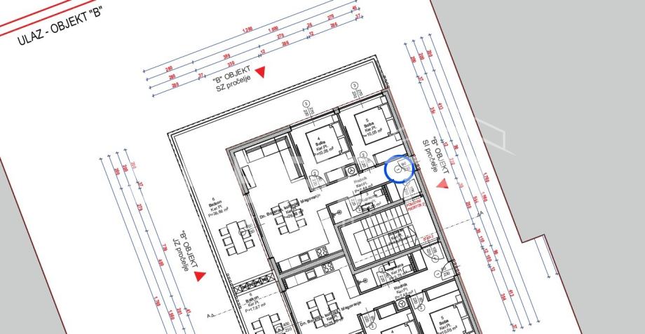 Objekt se gradi armiranobetonskom konstrukcijom, s vanjskom toplinskom izolacijom debljine 15 cm, Alu-troslojna podizna stolarija sa stop sol reflektirajućim, kvalitetnim keramičkim oblogama u svim prostorijama i protuprovalnim ulaznim vratima. Prostorije unutar stana su odvojene dvostrukom izolacijom knauf/kamena vuna koje ojačaju zvučnu i protupožarnu zaštitu.