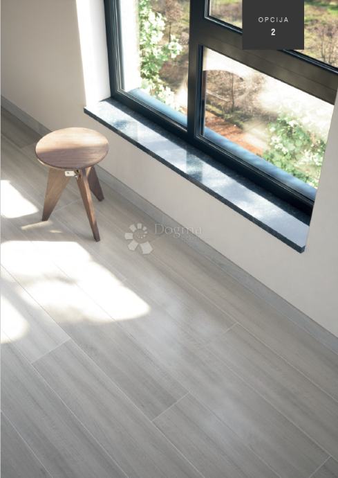 Opcija 2 - Grey Wood - Podovi dnevnog boravka i soba izvedeni svijetlo sivim keramičkim pločicama