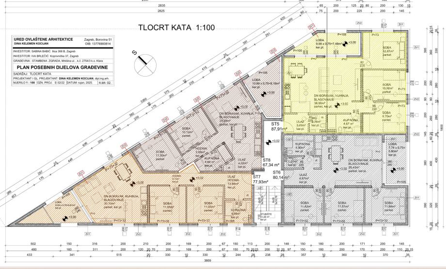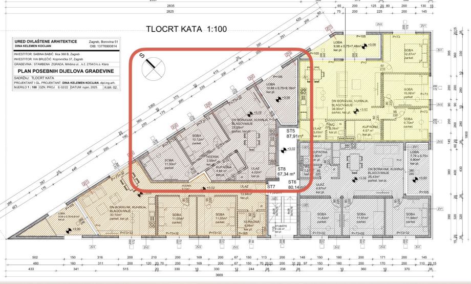 Trosobni stan na katu oznake ST8, podne površine 59,18 m², koji se sastoji od ulaza, hodnika, kupaone, dnevnog boravka, blagovaonice i kuhinje i dvije sobe s lođom na katu podne površine 10,88 m², kojem pripada parkirno mjesto oznake PM3 u prizemlju podne površine 12,50 m²