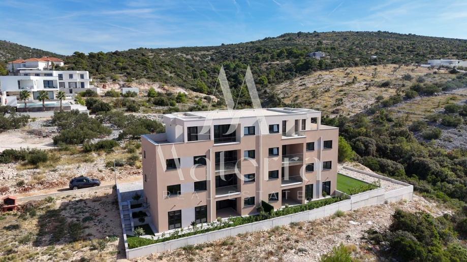 Na prodaju je stan s jedinstvenim pogledom smješten na prvom katu moderne stambene zgrade u mirnom mjestu Dolac, svega nekoliko minuta vožnje od slikovitog Primoštena. Zgrada se nalazi na blagoj uzvisini što omogućuje neometan pogled na Jadransko more. Udaljena je svega 300 metara od obale i prekrasnih plaža.