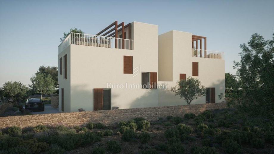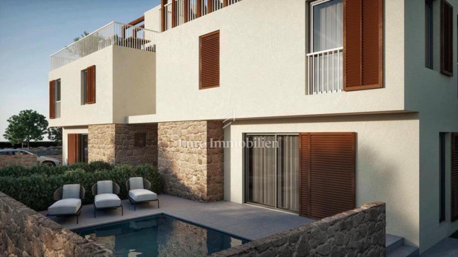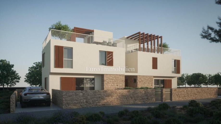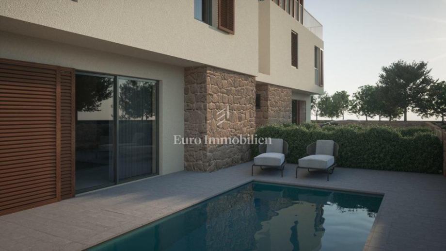 Prodaje se moderan stan s bazenom i pogledom na more u novogradnji u Tribunju.
