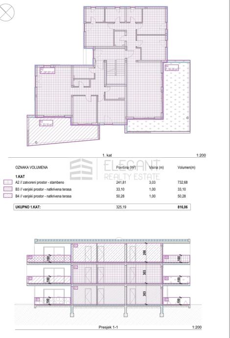 U prodaji imamo novogradnju, prodaja stanova u stambenoj zgradi. Zgrada se sastoji od 6 stambenih jedinica , od prizemlja, 1.kata i 2.kata. Po etaži se nalaze dva prostrana 3- sobna stana indentičnog tlocrta. Stambena jedinica se sastoji od dnevnog boravka s blagovaonicim i kuhinjom, wc, wc-om s kupaonicom , ostave , dvije spavaće sobe, prostrane terase i pripadajučih parkirnih mjesta. Sve je napravljeno prostrano, luksuzno i kvalitetno stavljajuči naglasak na potpuni užitak stanovanja u mirnom okruženju , predivnom pogledu na more i otoke. Udaljenost od plaže, ACI marine je na svega cca 300m, a dok do samog centra mjesta je potrebno dodatnih 5 minuta šetnje. Dokumentacija uredna, a očekivani rok završetka je 12 mj.2025 godine.