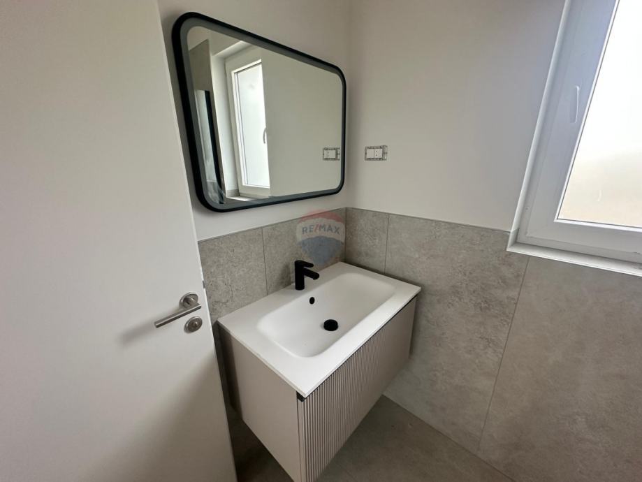 Prodaje se dvosoban stan u prizemlju zgrade s ukupno 6 stambenih jedinica. Stan ukupne neto korisne površine 95.55m2 sastoji se od stambenog zatvorenog dijela površine 75.01m2 i natkrivene terase površine 20.54m2 te nenatkrivene terase površine 2.01m2. Stambeni prostor stana se sastoji od 2 spavaće sobe, 2 kupaonice s vešerajem, ulaznog prostora i dnevnog prostora s kuhinjom i blagavaonicom.