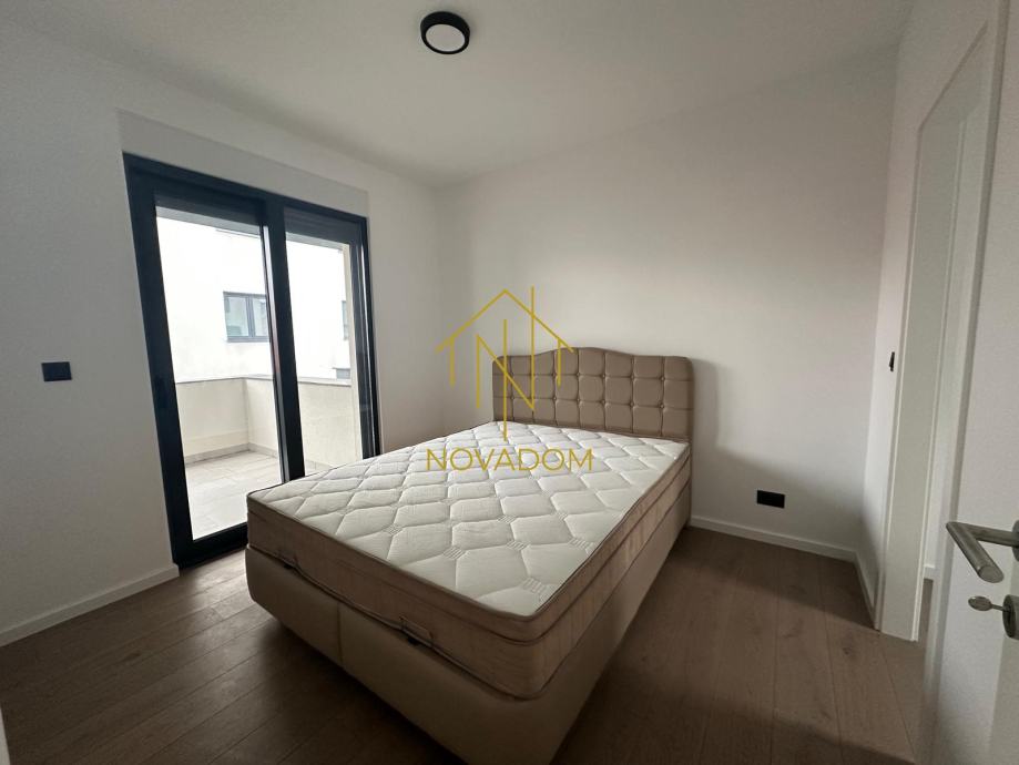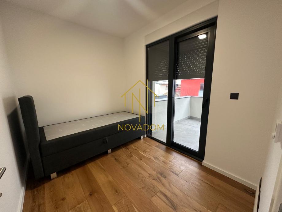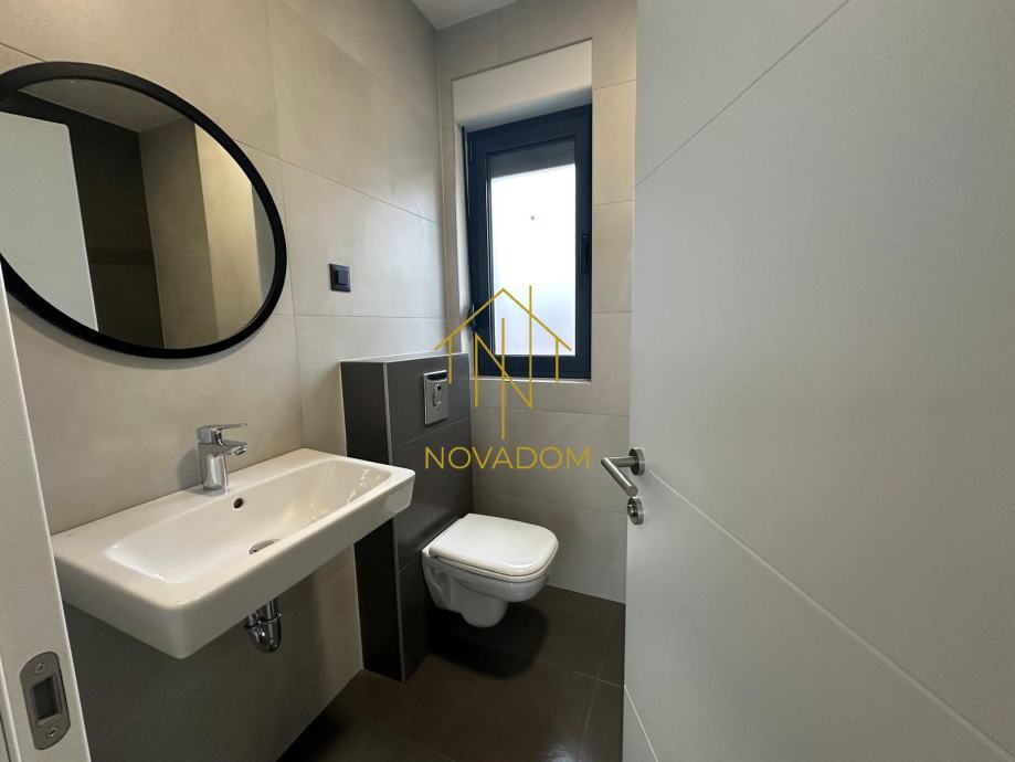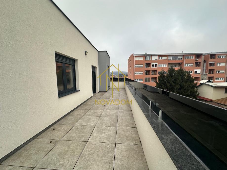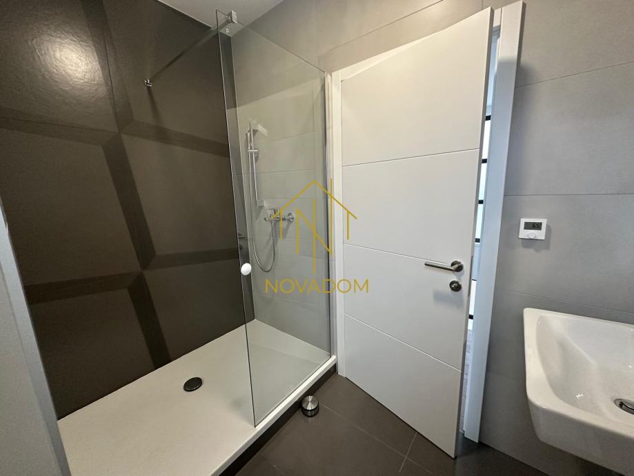 Troetažni 5s penthouse (140m2), kompletno namješten novim namještajem i opremljen prvoklasnim materijalima. Stan se sastoji od ulaznog prostora, prostora za spremište i zasebnog toaleta u prizemlju, 3 spavaće sobe (od čega jedna ima prostor predviđen za walk-in ormare) i kupaone s wc-om na I katu te open space koncept prostranog dnevnog boravka i blagovaone s kuhinjom, velike terase, kupaone s wc-om i spavaće sobe (s prostorom za walk-in ormare) na II katu. Stan je opremljen aluminijskom stolarijom, električnim podizačima za rolete, podnim grijanjem te klimatizacijom u prostorijama. Izvanstandardna visina stropova (2,80m). Stan također uključuje privatni parking za 2 automobila.