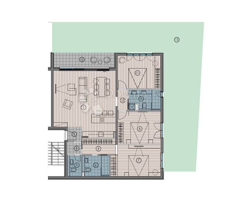 Prodajemo luksuzni trosobni stan stambene površine 107.64 m2 koji se nalazi u prizemlju stambene zgrade u mjestu Marina, okolica Trogira.