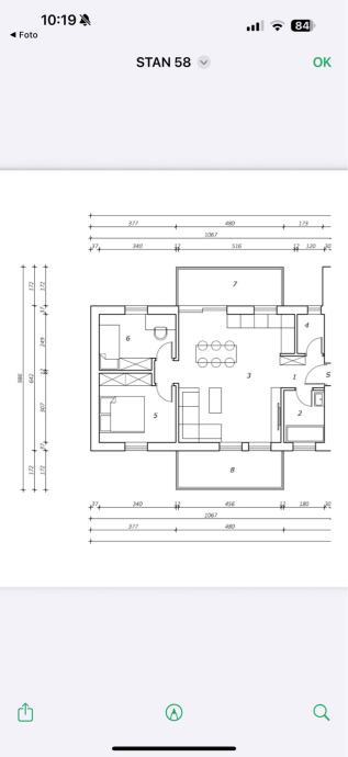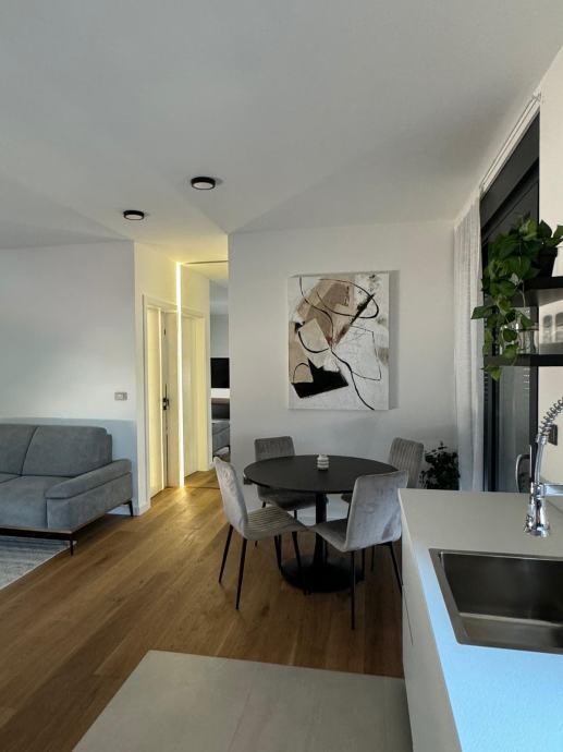 Stan se sastoji od : dnevnog boravka, kuhinje, kupaone, ostave, dvije spavace sobe i dva natkrivena balkona. Prodaje se potpuno namješten. Stanu pripadam vanjsko parkirno mjesto…