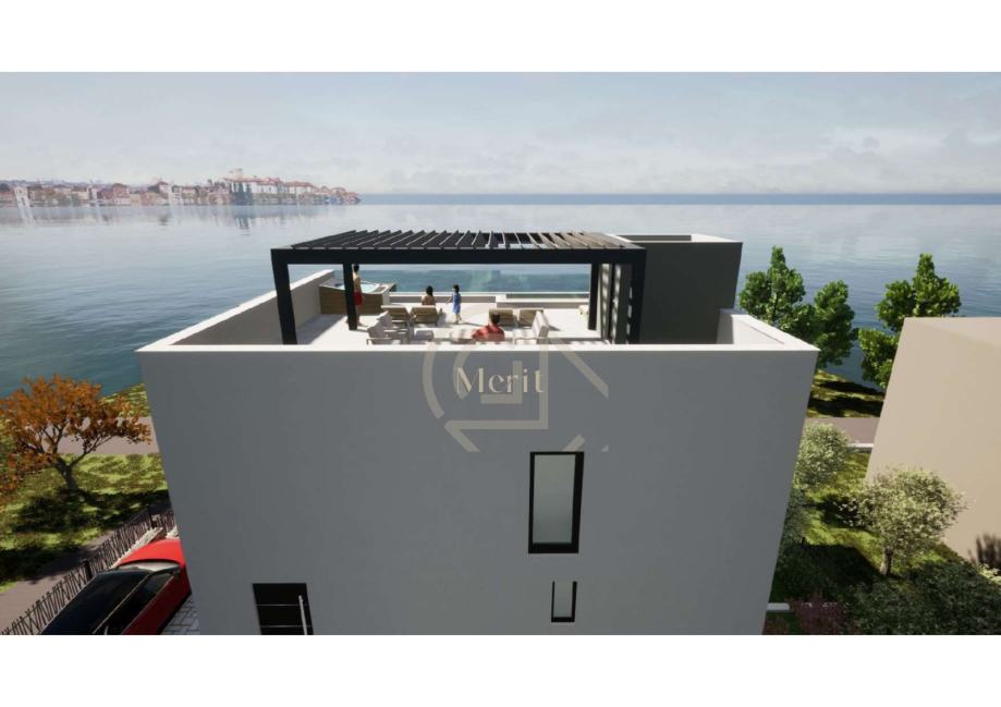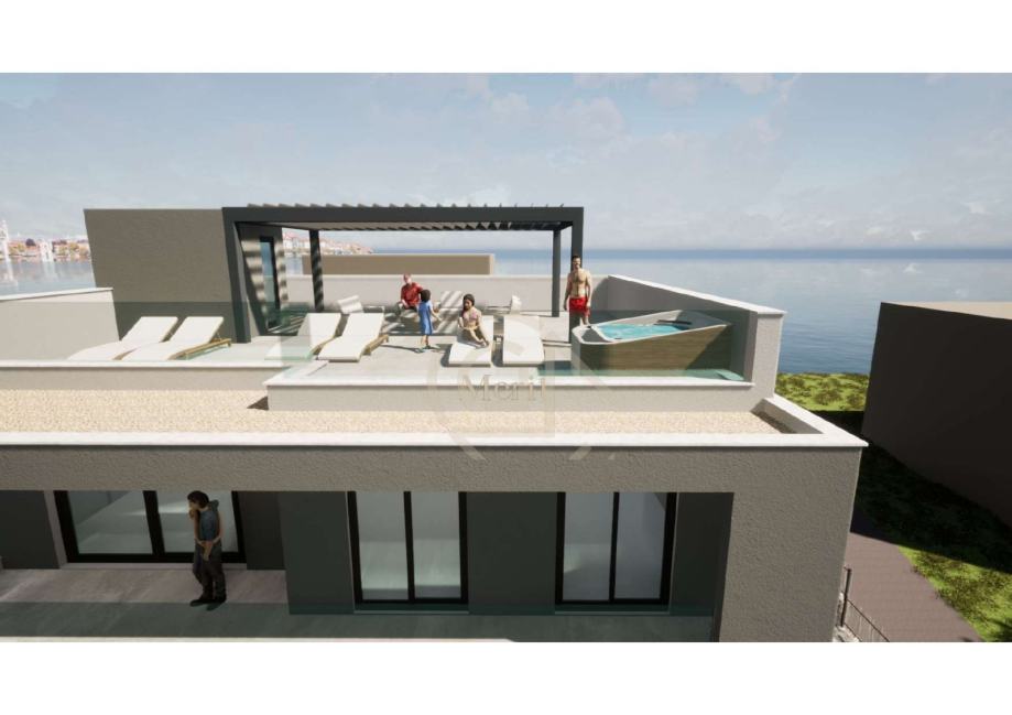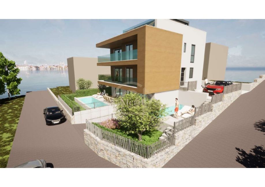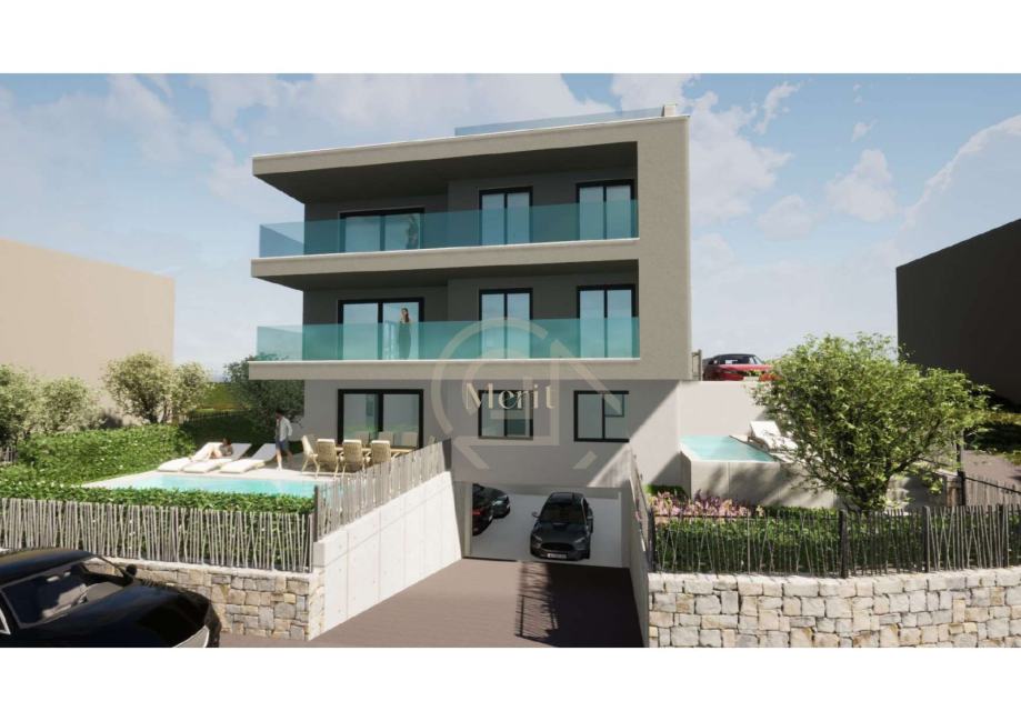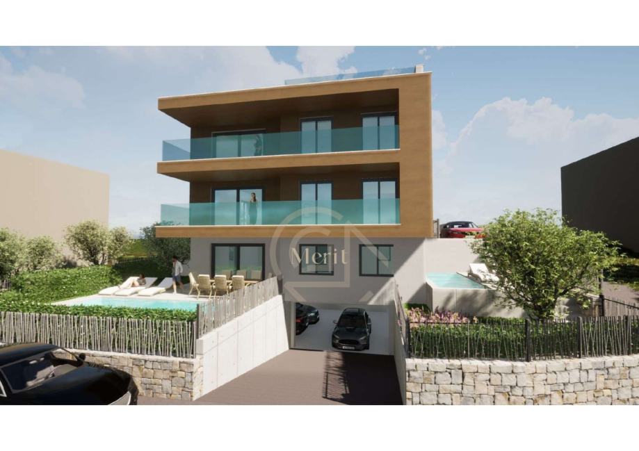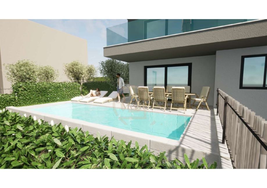 Novogradnja, Trosobni stan sa svojim vrtom i bazenom, 100m od mora (prodaja)
