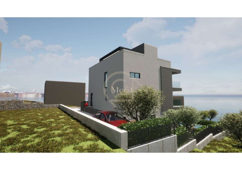 U srcu Okruga Gornjeg, na samo 100 metara od kristalno čistog mora, smjestila se ova prestižna nekretnina koja nudi savršen spoj luksuza, privatnosti i moderne arhitekture. Smješten u ekskluzivnoj, maloj stambenoj zgradi s ukupno samo tri jedinice, ovaj prostrani stan pruža osjećaj elegancije i udobnosti na jednoj od najtraženijih lokacija.
