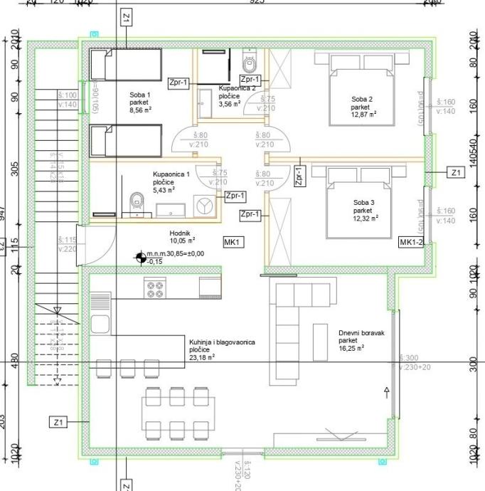Ovaj luksuzni dom ističe se sofisticiranim dizajnom i pomno odabranim materijalima vrhunske kvalitete. Prostrani dnevni boravak i blagovaonica otvorenog koncepta obasjani su prirodnim svjetlom zahvaljujući velikim staklenim stijenama koje povezuju interijer s elegantnim vanjskim prostorom.