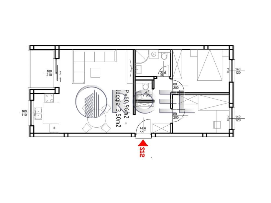 Trosobni stan, 60,96m² + loggia 3,50 m²