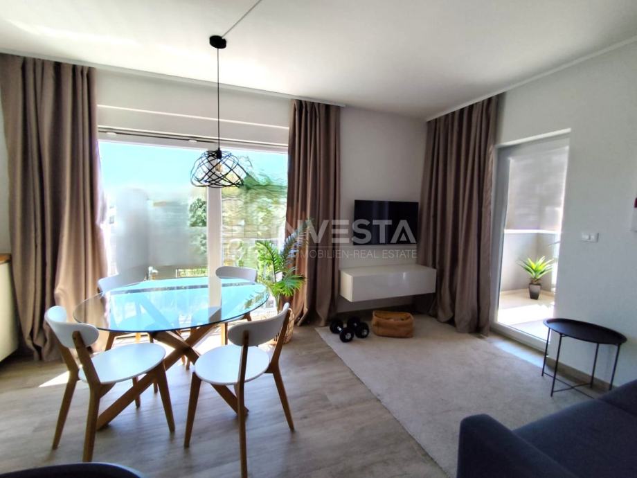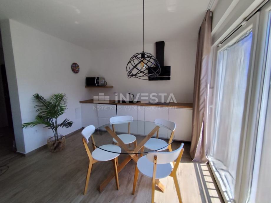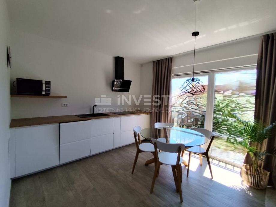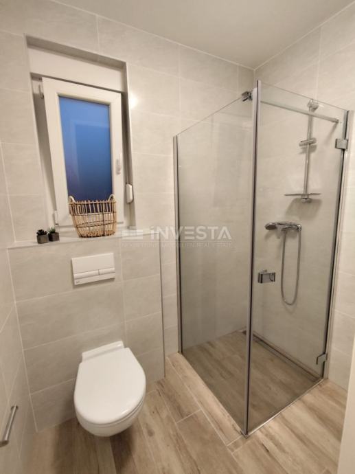 Smješten je na prvom katu novogradnje sagrađene 2021. godine. Sastoji se od ulaznog hodnika, dvije spavaće sobe, kupaonice, kuhinje, dnevnog boravka + blagovaonice s izlazom na lođu, spremišta u prizemlju i vlastitog parkirnog mjesta.