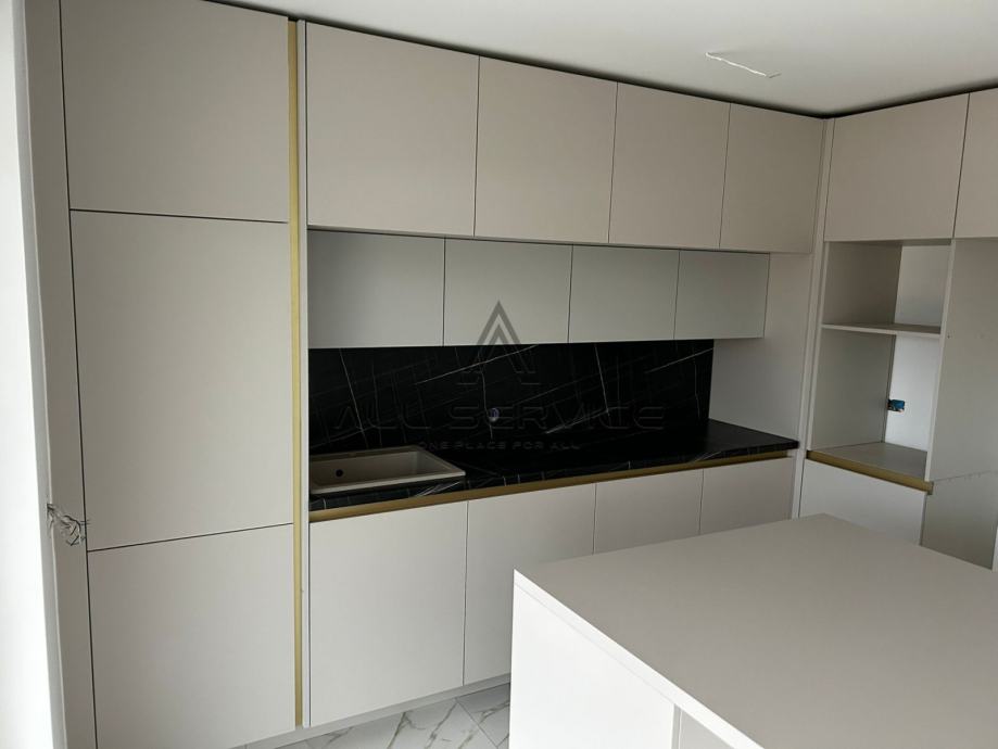 Osim vrta od 220 m2, stan se prodaje, namješten, opremljen kupaonskim sanitarijama i kuhinjskim namještajem po mjeri, te ima postavljeno podno grijanje u cijelom stanu .