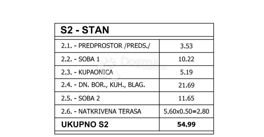 - Ukupna stambena površina 55 m2