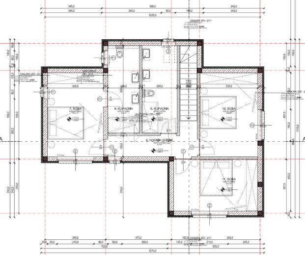 Prvi kat sastoji se od tri spavaće sobe i dvije moderne kupaonice, pružajući privatnost i komfor za sve članove obitelji.