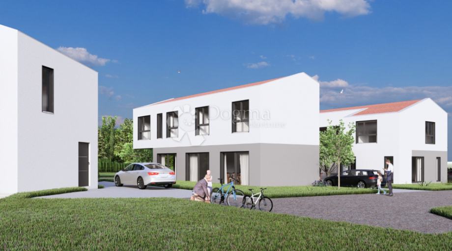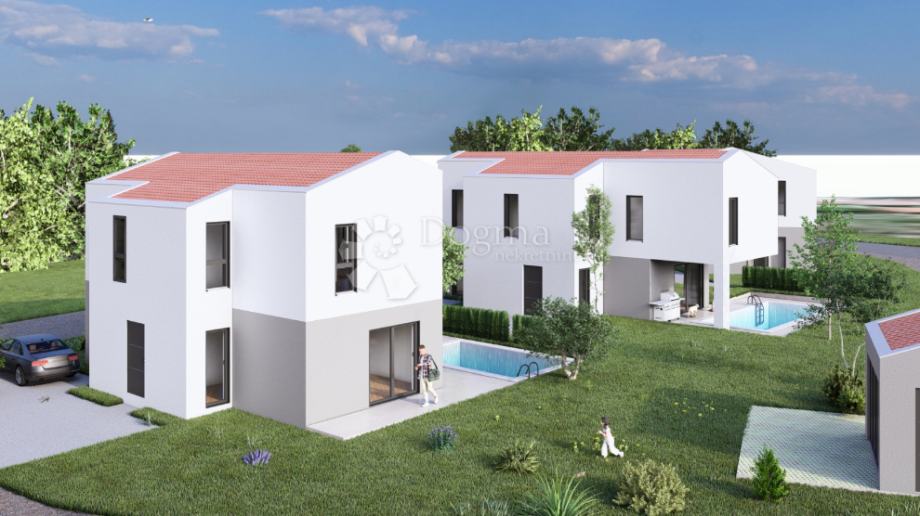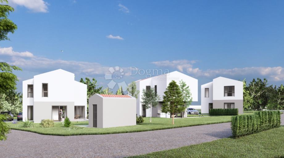 Na atraktivnoj lokaciji u mirnom naselju nedaleko Vrsara, prodaje se nova, moderna kuća ukupne stambene površine 151,10 m², smještena na okućnici od 626 m².