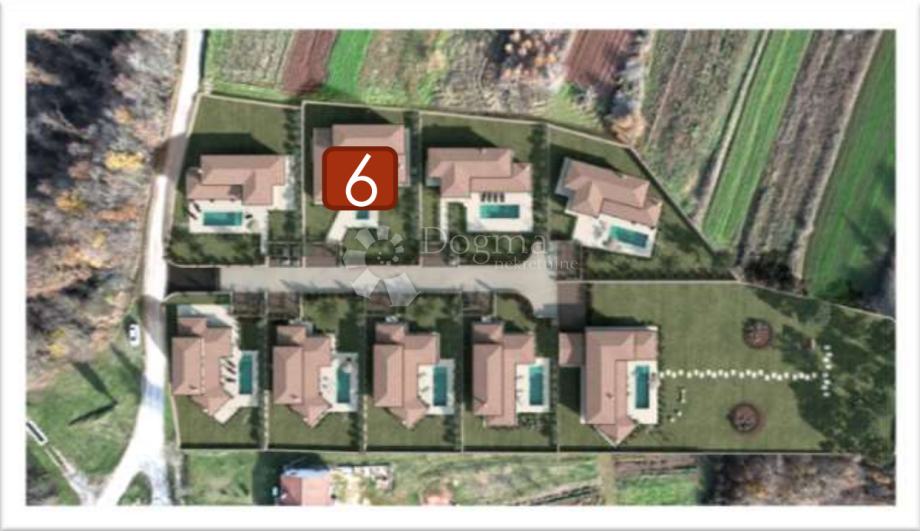 Kompleks je osmišljen u mediteranskom (autohtonom – Istarskom) stilu s vilama s bazenima. Udaljenost od većih gradova kao što je Pula je 30km do je Rovinj na svega 20km, što budućim kupcima pruža blizinu urbanim sredinama i moru te istodobno mogućnost življenja ili boravljenja u miru i tišini šarmantnog Istarskog sela.