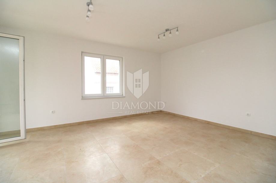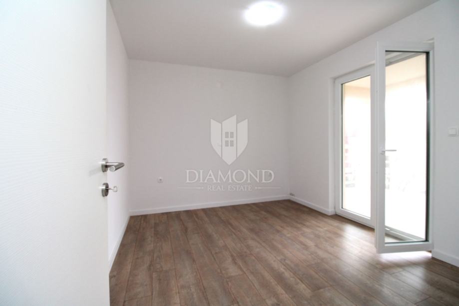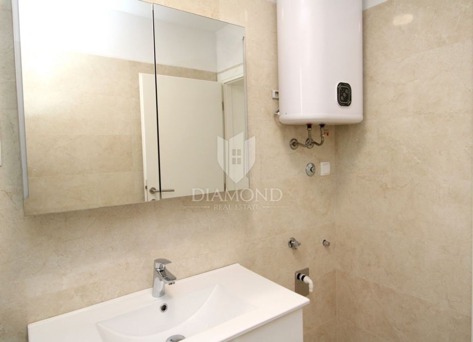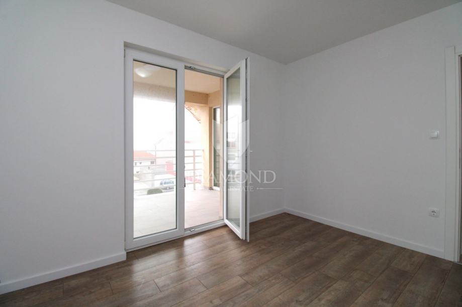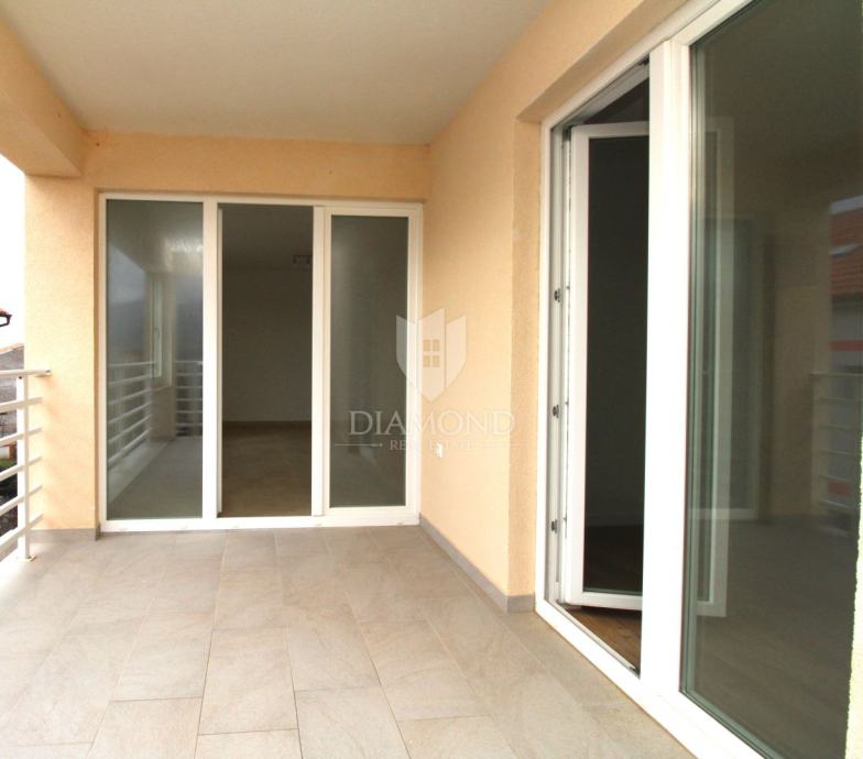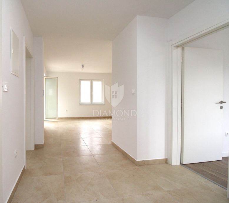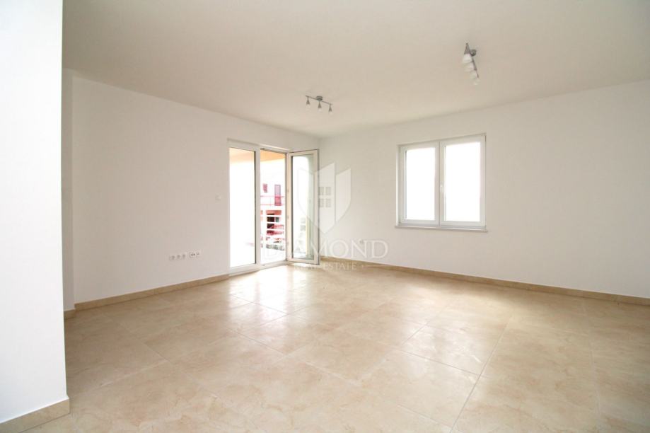 Stan je ukupne površine 75 m², od čega 65 m² čini stambeni prostor, dok je 10 m² natkrivena terasa idealna za uživanje na otvorenom. Sastoji se od dvije prostrane spavaće sobe, kupaonice, zasebnog WC-a te kuhinje i dnevnog boravka, koji su povezani u modernom open-space konceptu. S terase se pruža djelomičan pogled na more, dodajući ovom stanu poseban doživljaj.