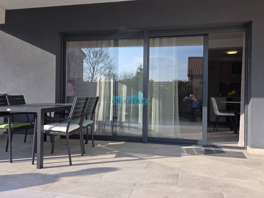 Stan je osmišljen prema open space konceptu te obuhvaća kuhinju s blagovaonicom i prostrani dnevni boravak iz kojeg se izlazi na veliku terasu. Terasa je djelomično natkrivena te pruža savršen prostor za opuštanje i uživanje na otvorenom.