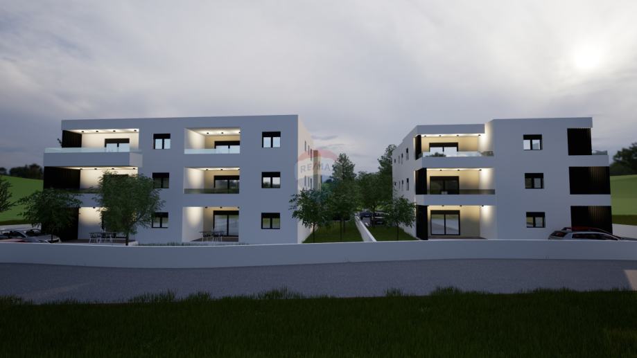 Dvosoban stan (2 spavaće sobe) nalazi se u zgradi s ukupno 6 stanova. Stan se sastoji od ulaza, hodnika, 2 spavaće sobe, kupaonice, kuhnje s blagavaonicom, dnevnog boravka i terase površine 15.87m2. Pripada mu 1 parkirno mjesto u dvorištu zgade s tim da postoji mogućnost nadoplate još parkirnih mjesta. Stanu pripada i vrt površine cca 130m2.