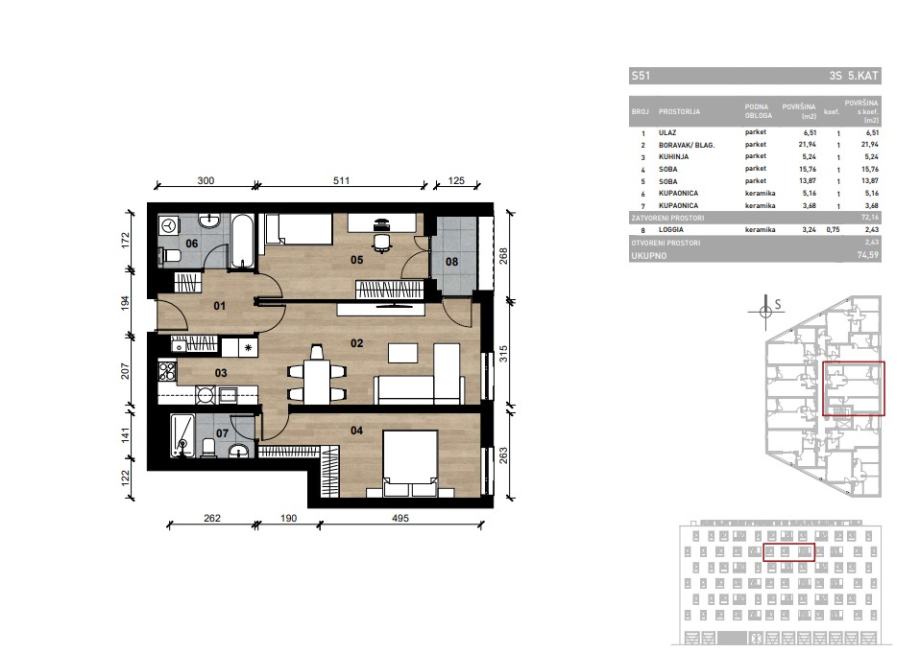 NOVOGRADNJA VRAPČE, 3SB - 5. KAT - 74,59 m2, BEZ PROVIZIJE! (prodaja)