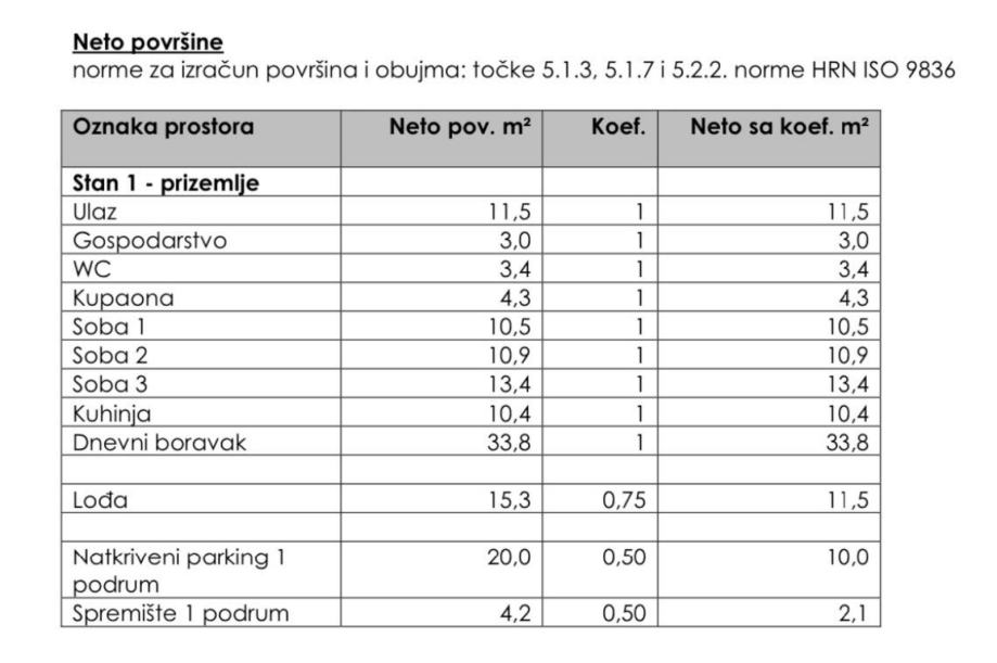 KVADRATURA STANA PO PRERAČUNATOM KOEFICIJENTU : VISOKO PRIZEMLJE