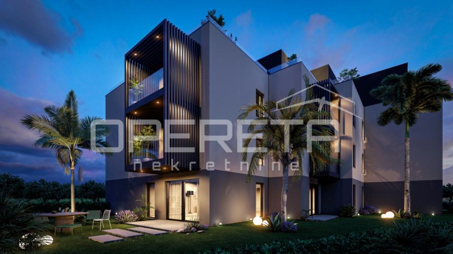 Izgled zgrade je suvremen, s istaknutim dizajnom terasa i uređenom hortikulturom.