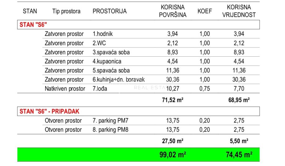 - Neto korisna površina: 74,45 m2